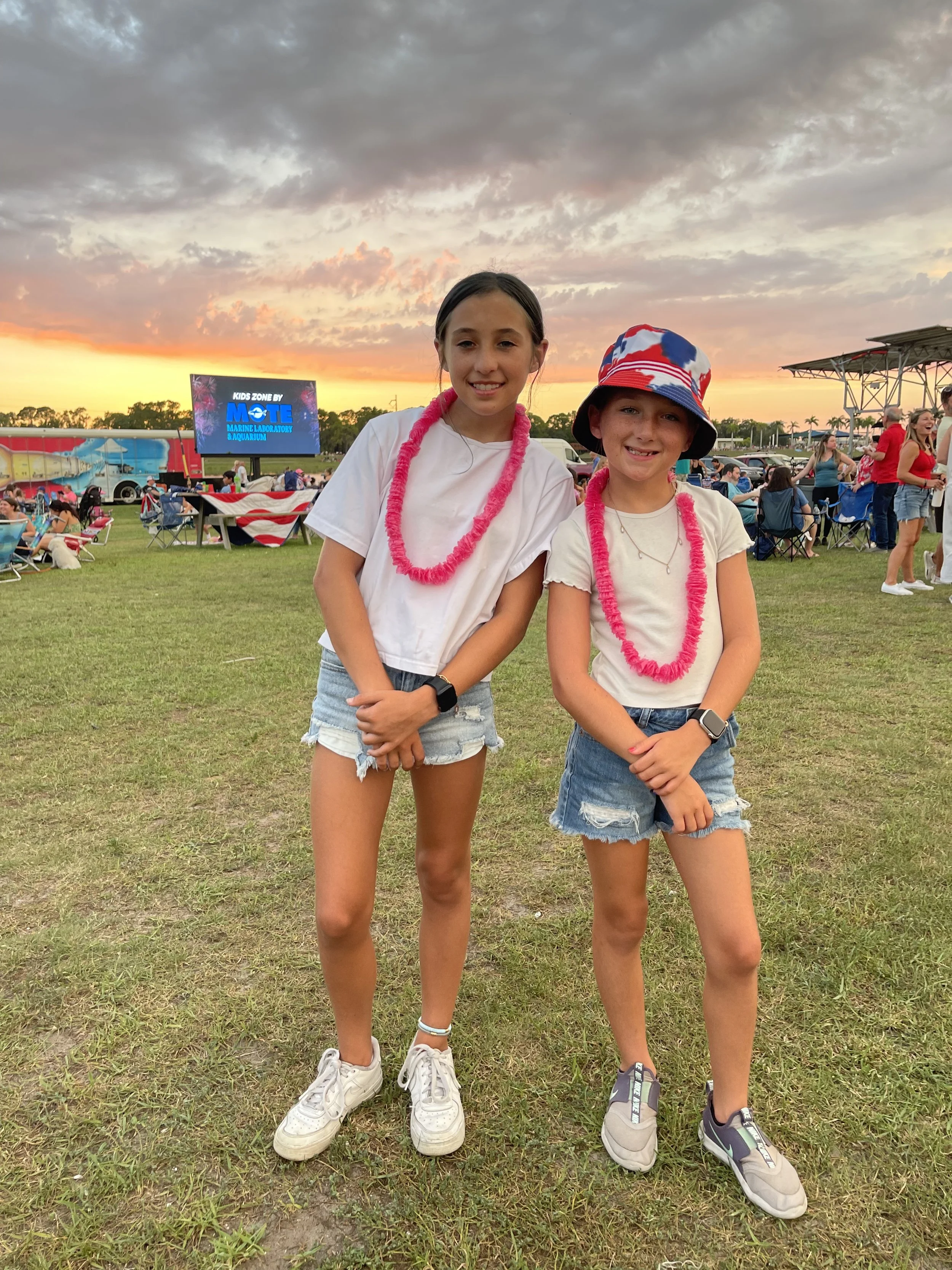 We started our celebrations on Tuesday night at Nathan Benderson Park where we enjoyed all the activities they had on site, pizza for dinner and fireworks. Bonus was running into friends and cheer coaches and catching a killer sunset while we waited for fireworks to start.