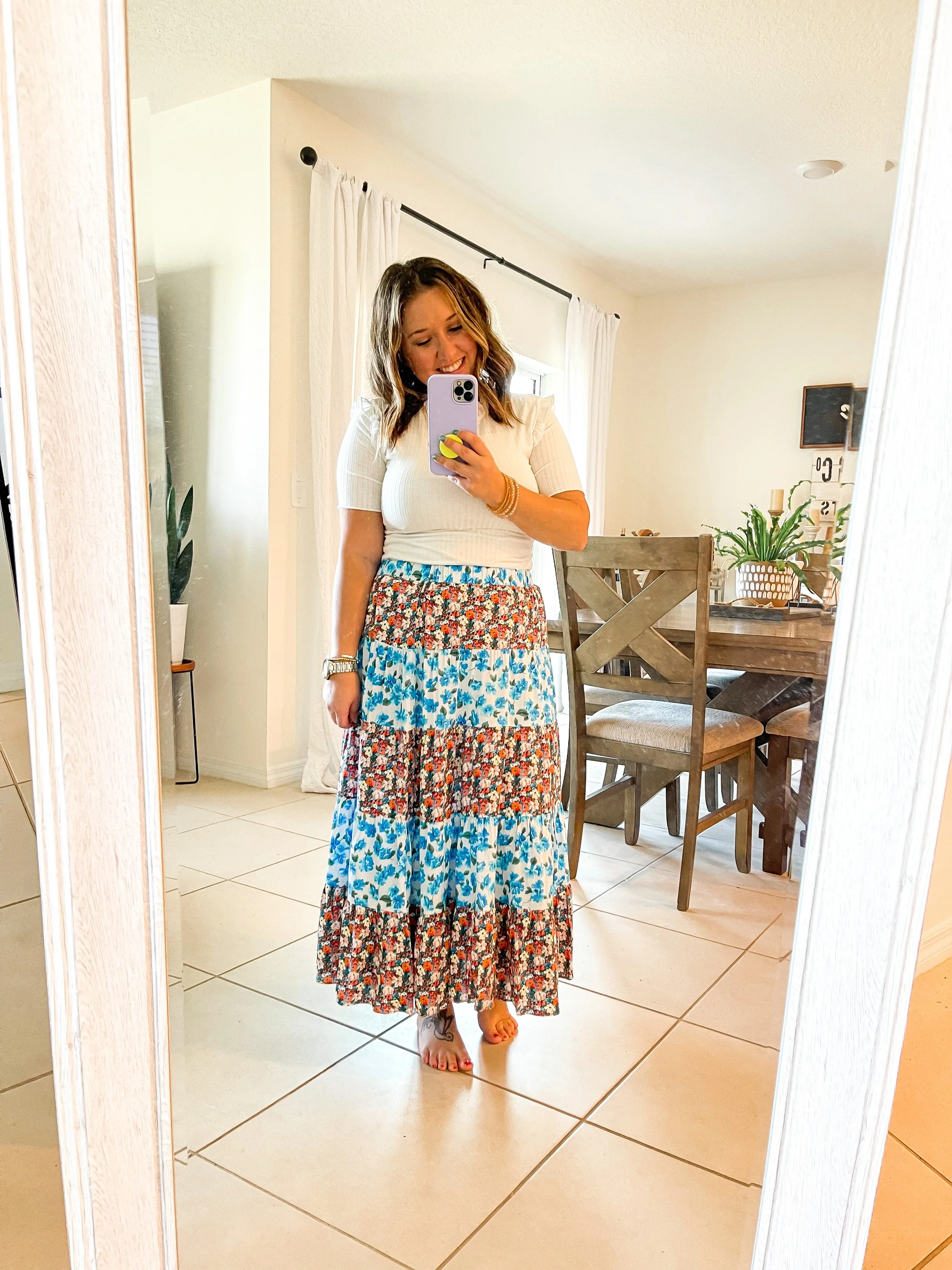 Shop Rooted and Free new arrivals and I fell in love with this skirt so much! It reminds me of one I loved from Anthro that sold out and you better believe you will see this on repeat all spring long!