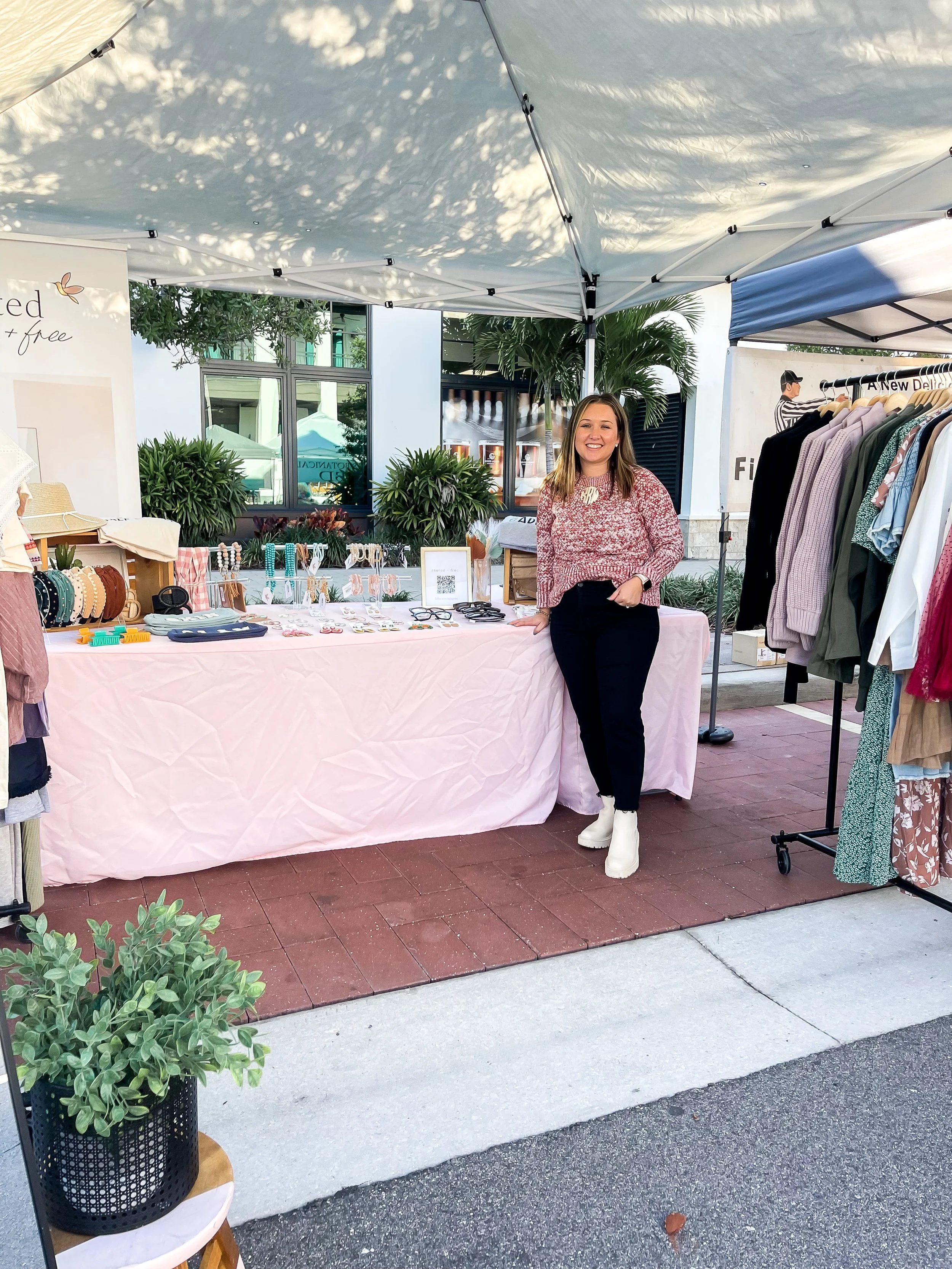 Same jeans, new sweater for my pop up a couple weeks ago. It was a little chilly so I busted out the boots and this old sweater from Target. I love the rust color and design with cream.