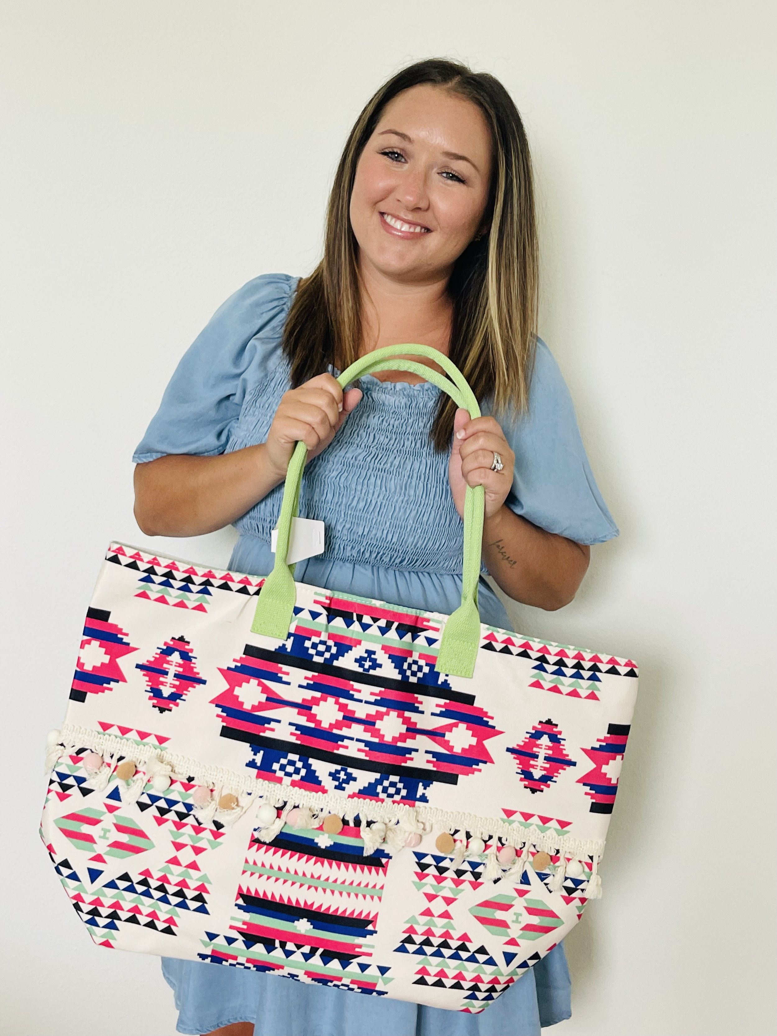 Everyone needs the perfect carry all tote. Whether you use it as a carry on for travel, a diaper bag, a catch all mom bag, a work bag…you get the idea you can use it for anything. It is a great size and has a zipper top making it secure as you carry it around. The beautiful print and the colors really make it pop making it such a fun addition to your cart!