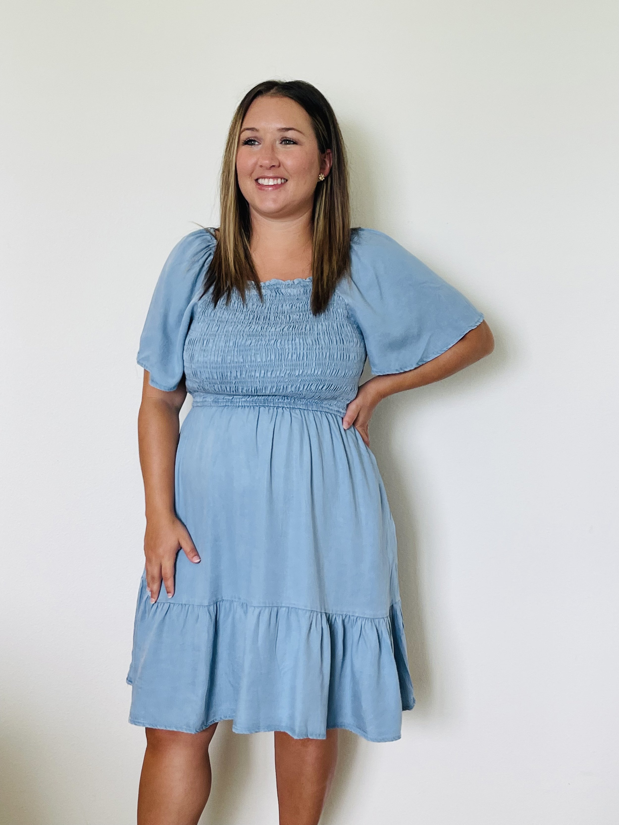 This denim dress has been a favorite of customers especially once they feel how soft this denim is. It features pockets and the prettiest flutter sleeves. I originally ordered it to keep one and wear to Luke Combs with white cowboy boots and pink earrings but it is the perfect dress to style any way you want! You won’t regret grabbing this one.