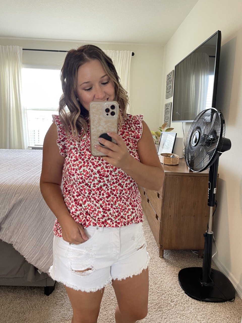 I am also obsessed with the new floral top shown below. It is the softest shirt I have added to my closet in a really long time and I am a sucker for any top that fairs perfectly with white denim.