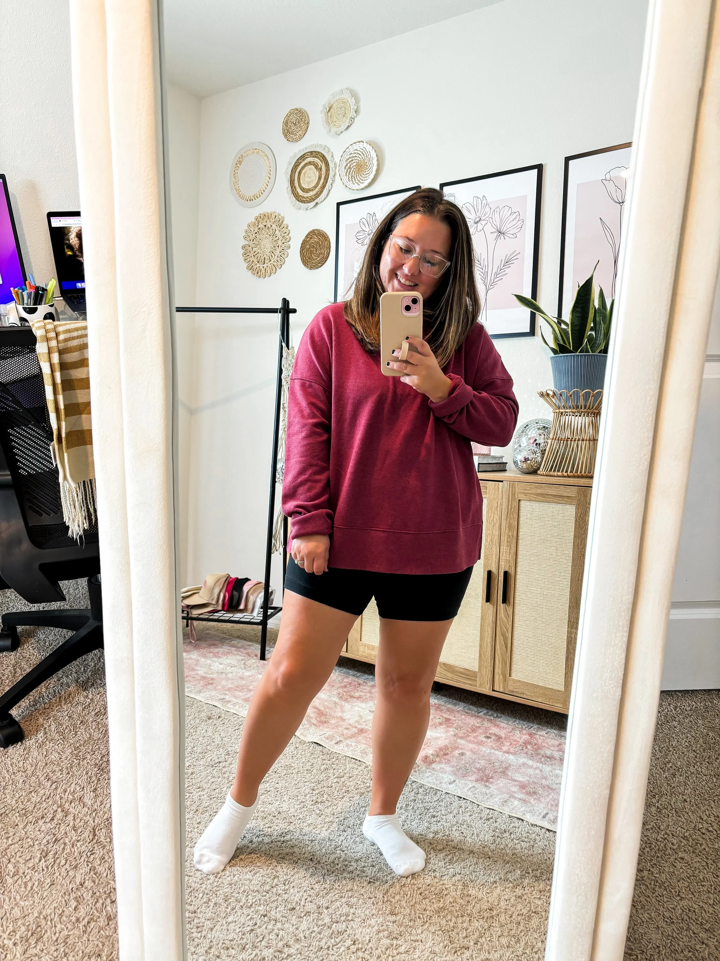 Favorite cozy outfit thanks to Walmart. This tunic is so soft and cozy and only $12 in store! I found a few options online and changes are I will be adding every color to my closet because it is that good. The perfect work from home during a hurricane outfit.