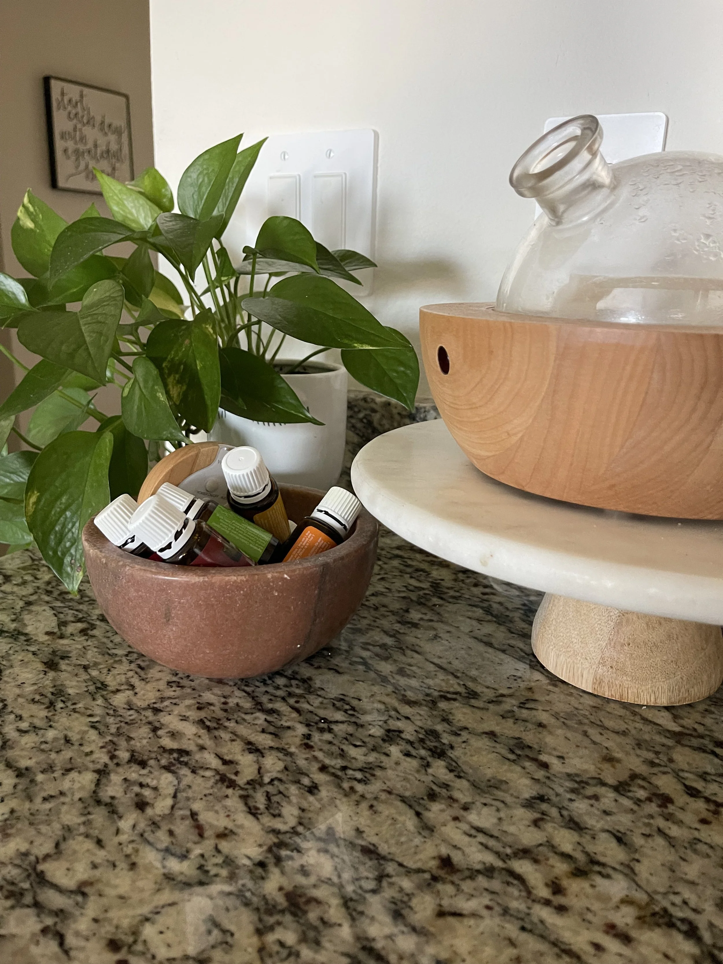 Last but definitely not least is our diffusers and oils. We have one in every room, a diffuser with a little jar of oils next to it. We diffuse and use oils everyday to help support our health so I had to mention it here. This is our first line of defense, before we need medicine. Every morning this is the first diffuser to go on in because its in our kitchen which is the before school hub!