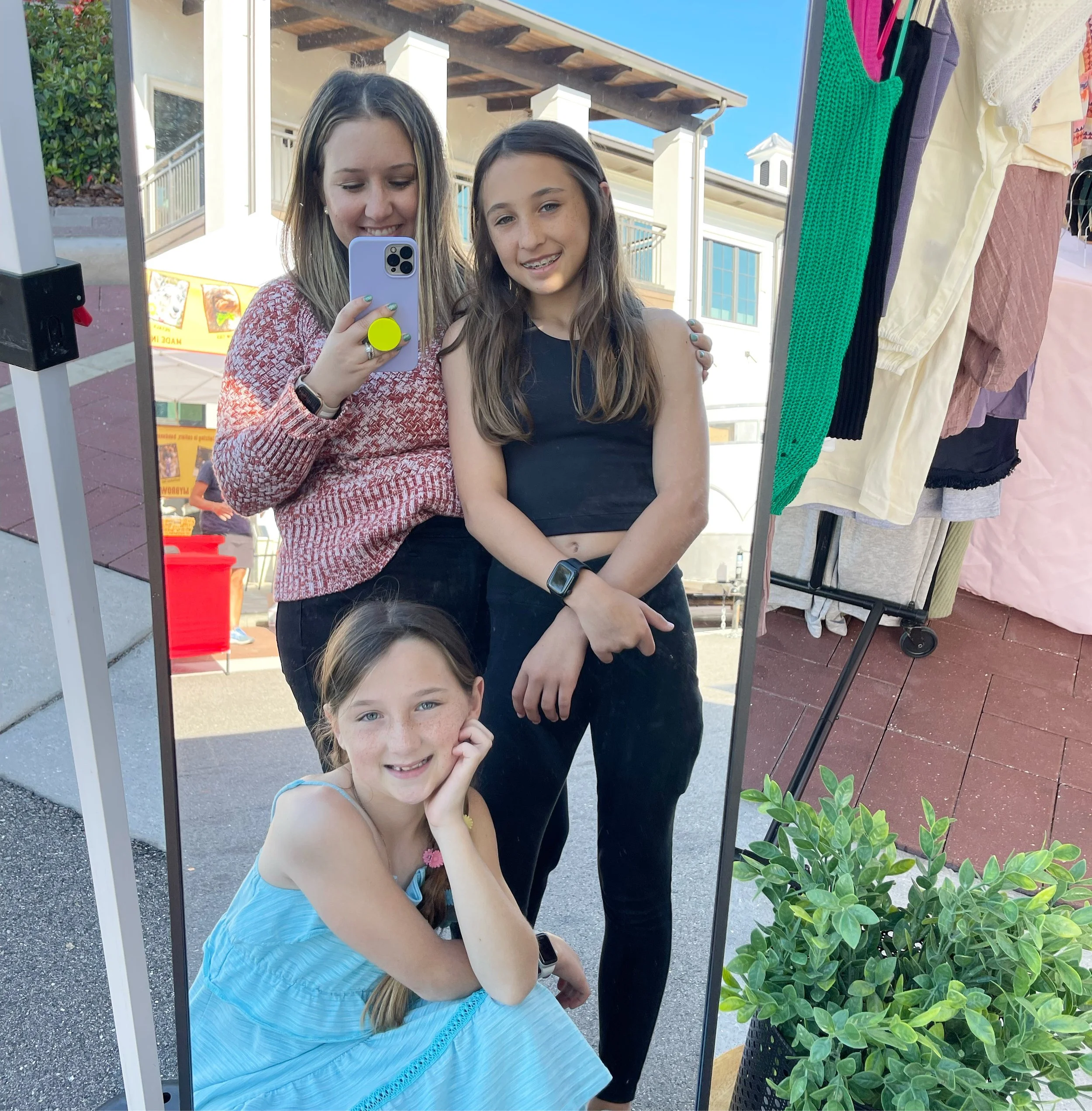 The girls were amazing all week long while Joe and I worked, I tried to sprinkle in some fun when I could but they tagged along a lot and were excited to earn their first paycheck by helping me! We even opened them Greenlight cards so they can keep helping and earning money. They loved tagging and steaming and help me set up and work 2 pop ups.