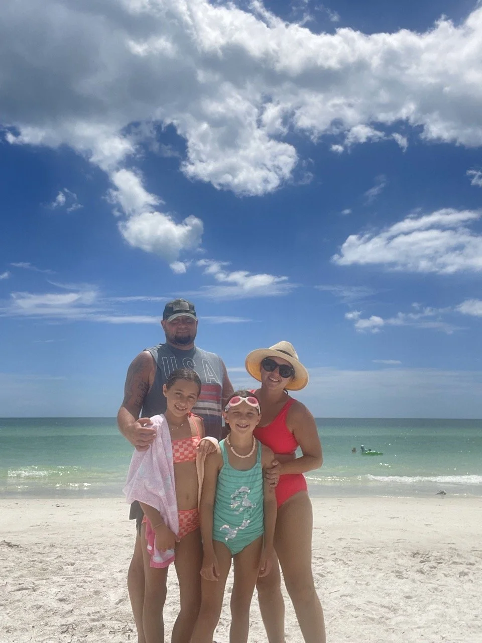 Joe and I both also took Monday off so we decided to hit the beach for the day before we had cheer and church obligations in the evening. We went to Anna Maria Island which is probably our favorite beach close by and spent the day swimming, reading and having fun together. A huge storm rolled in right after we took this picture and we quickly packed up and headed home! Funny how it can be blue skies and all of a sudden not. You can actually see the storm rolling in, in the upper left hand corner of the pic.