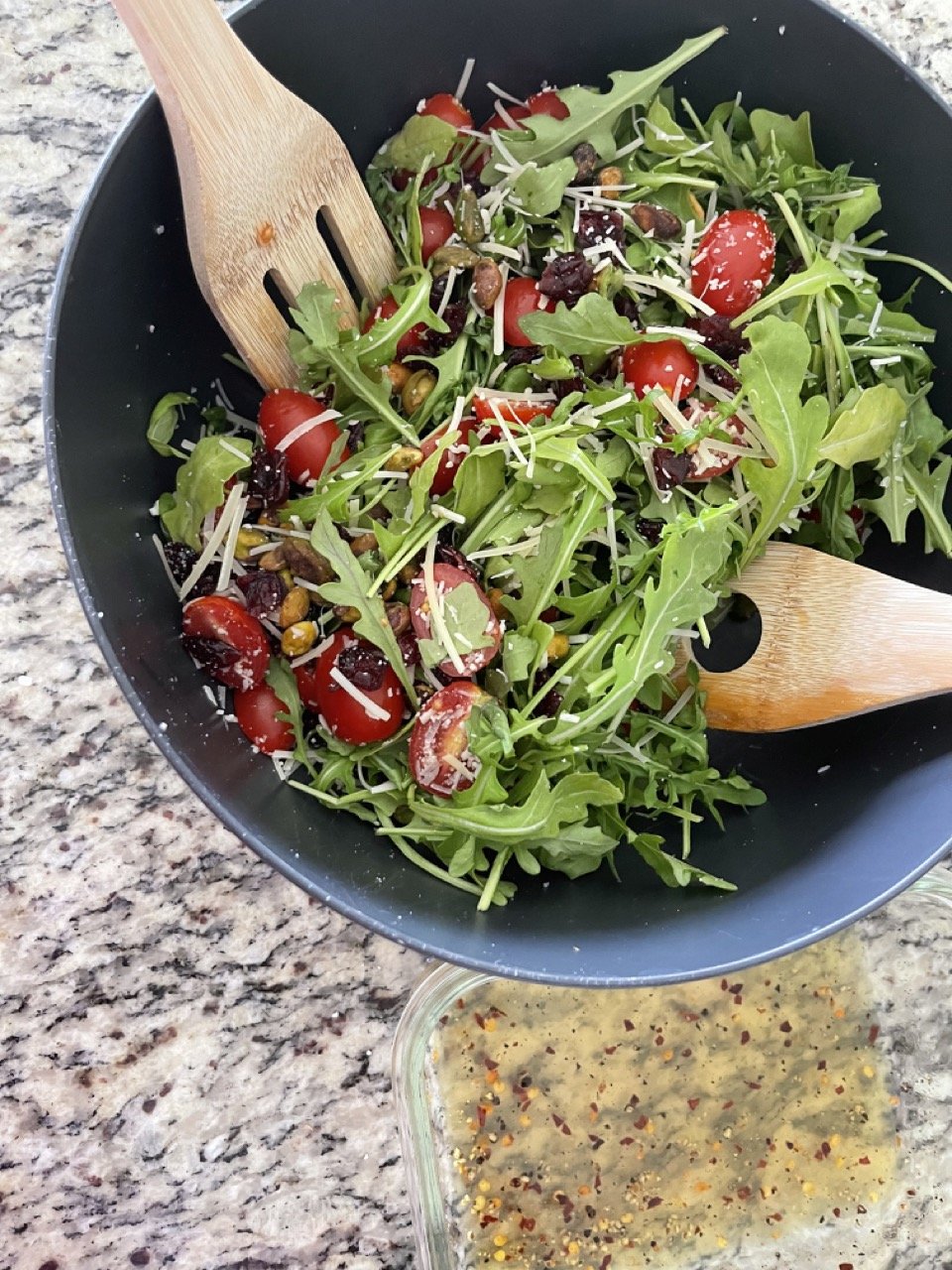 Pistachios (her salad didn’t have these but I had a little on hand and threw them in there to use them up)