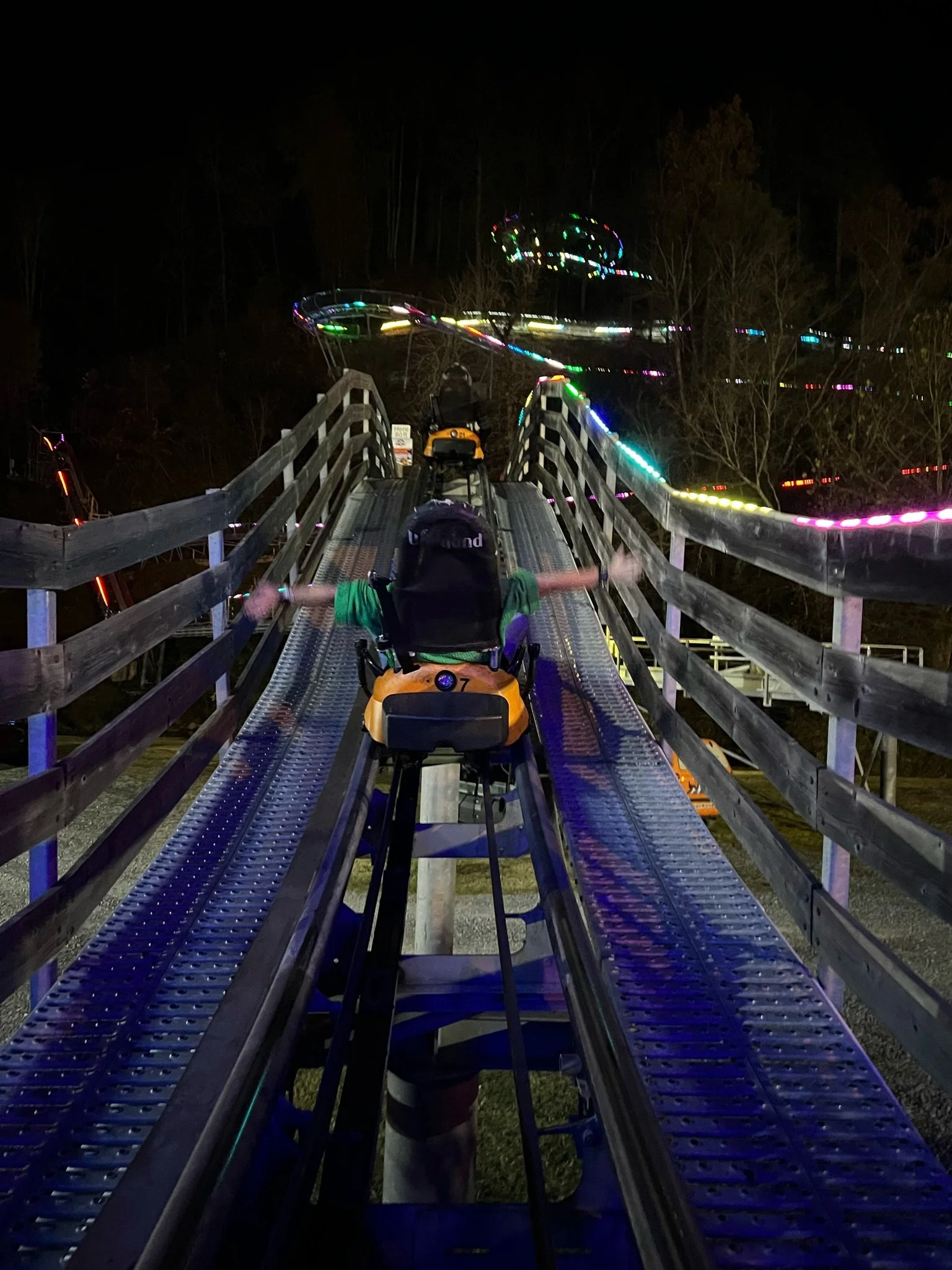 Before we left we purchased mountain coaster tickets on Groupon so we decided to hit it up at night….