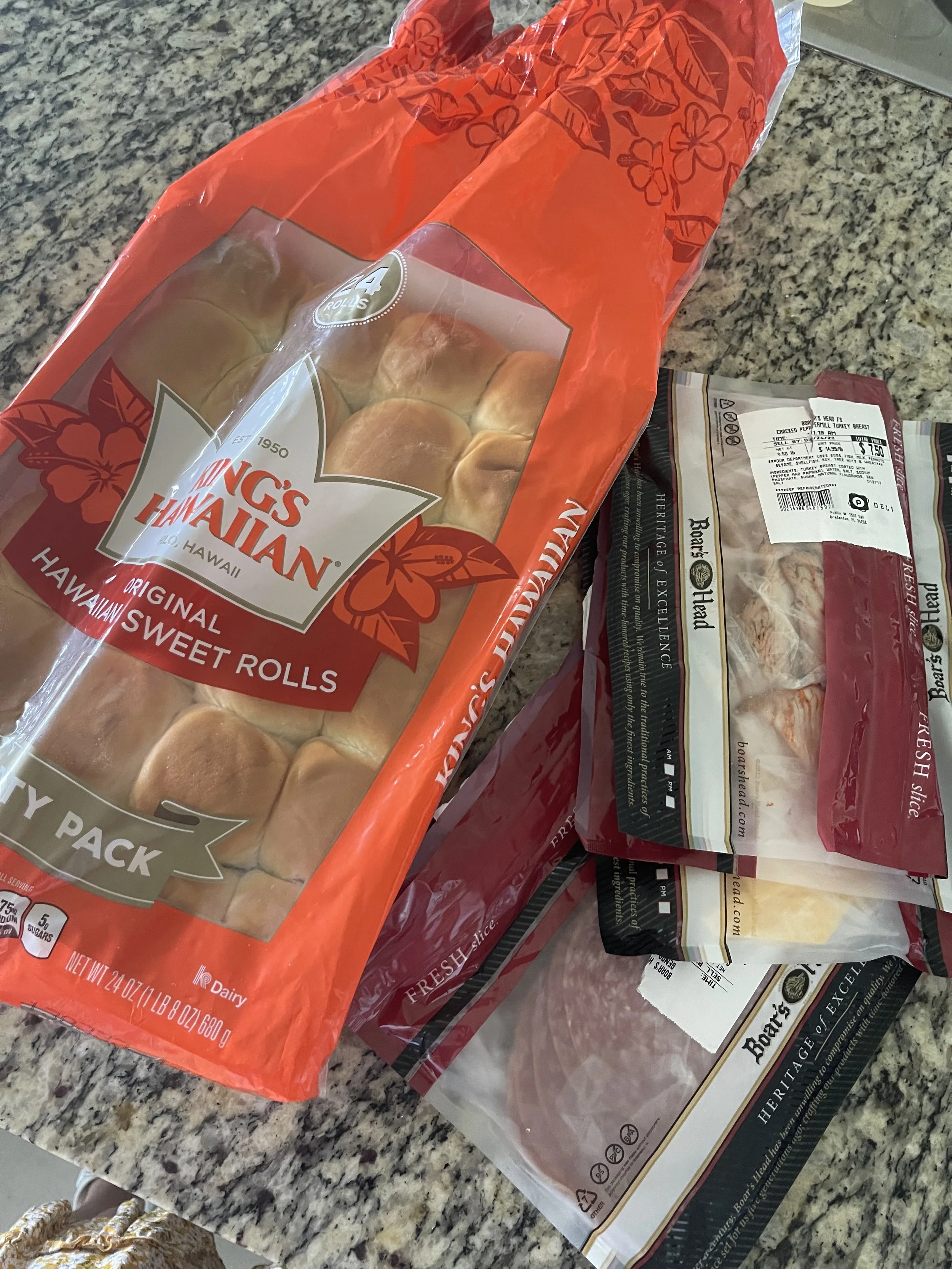 All you need is the condiments and lunchmeat/cheese of your choice and King’s Hawaiian roll pack. I always grab the 24 pack since there are 5 of us but they have a 12 pack if you don’t need as many as we do.