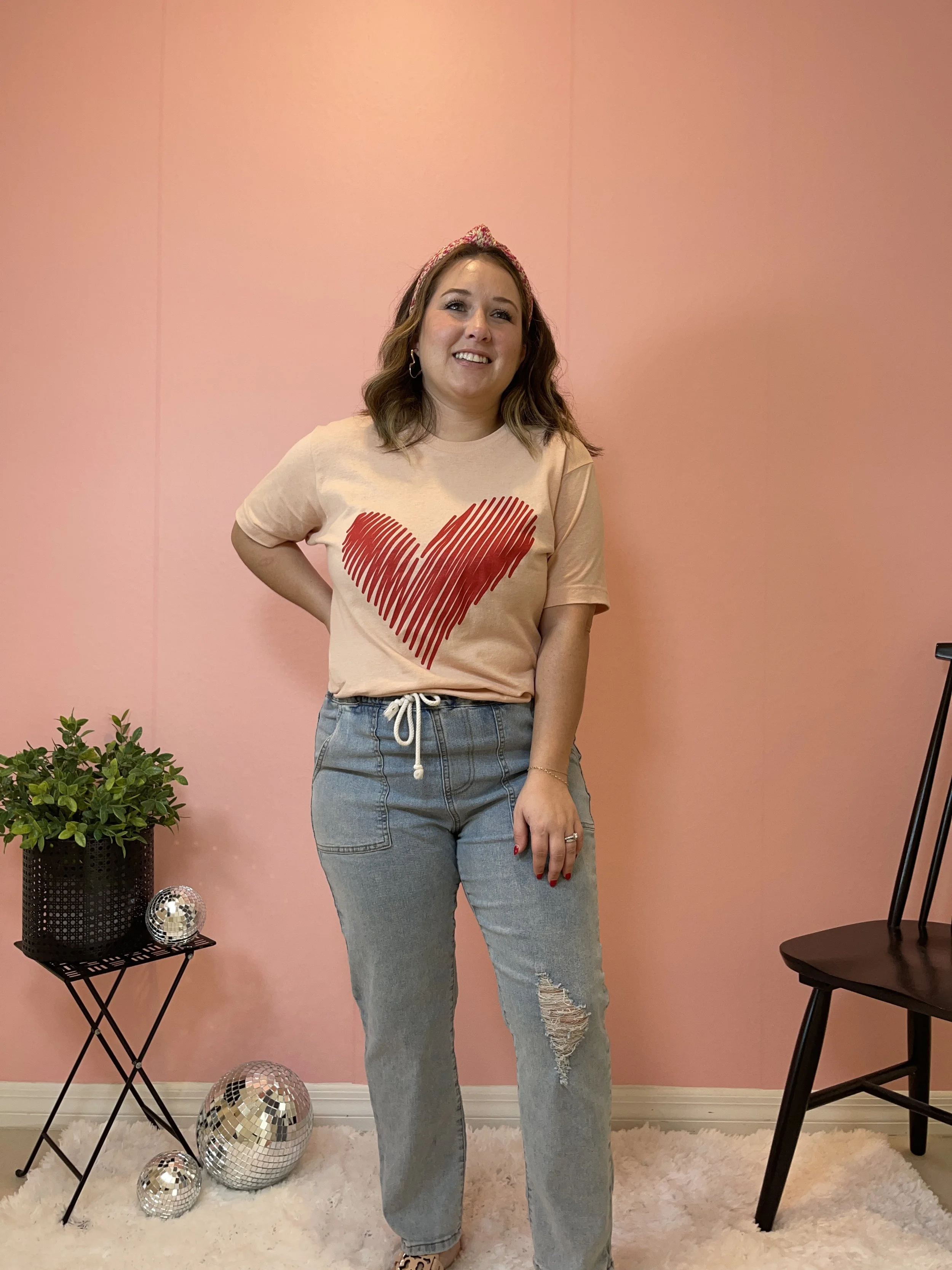 First up for my casual ladies, this graphic tee is so soft and the colors are so pretty. The red heart pops on the pink and the scribble makes it different which I love. I picture moms wearing this to volunteer at their kids schools, teachers and it would be cute paired with a blazer and slacks in the office.